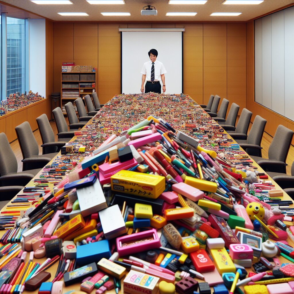 「ありそうでなかった」消しゴムコレクション全国制覇から始まった謎の会議室、そこに詰まった文房具の山は、ただの物体以上の意味をもって職場や地域に穏やかな波紋を広げ始めている。