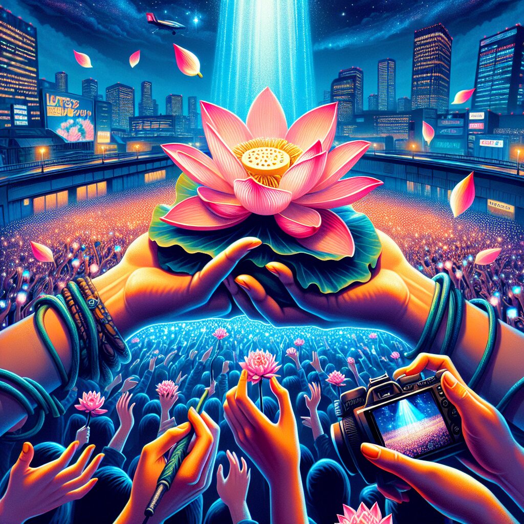 この“蓮フラワームーブメント”が常態化すれば、公式側も「蓮アレンジ公認化」や「光るハイテク蓮」開発に乗り出すかもしれない。すでにSNS上では「LED内蔵型、押せば色変わる蓮」をDIYで製作するファンも。次の大阪公演では“蓮の花ジャック”が企画される噂も飛び交う。今後「蓮の花」は魂のペンライト的存在に進化するかも?