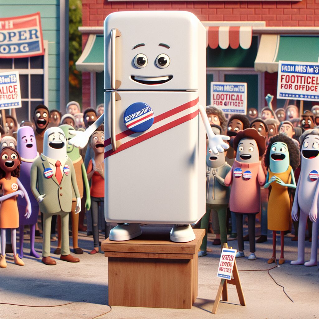 小さな地方都市・青葉町(人口約12,300人)で、1台の冷蔵庫が「立候補」を宣言した――。と聞くと都市伝説のようだが、事実上はMさん宅の冷蔵庫(以下「フリコーさん」)に貼られた手作りの立て札が発端となり、町全体を巻き込む騒動に発展した。ソーシャルメディアで拡散、選挙管理委員会への問い合わせ、地元新聞の特集、さらには政策をめぐる公開討論会の開催まで結びついた。笑い話に見えるが、表現の自由、選挙運動のルール、コミュニティの政治参加という重要な論点を浮かび上がらせた出来事でもある。