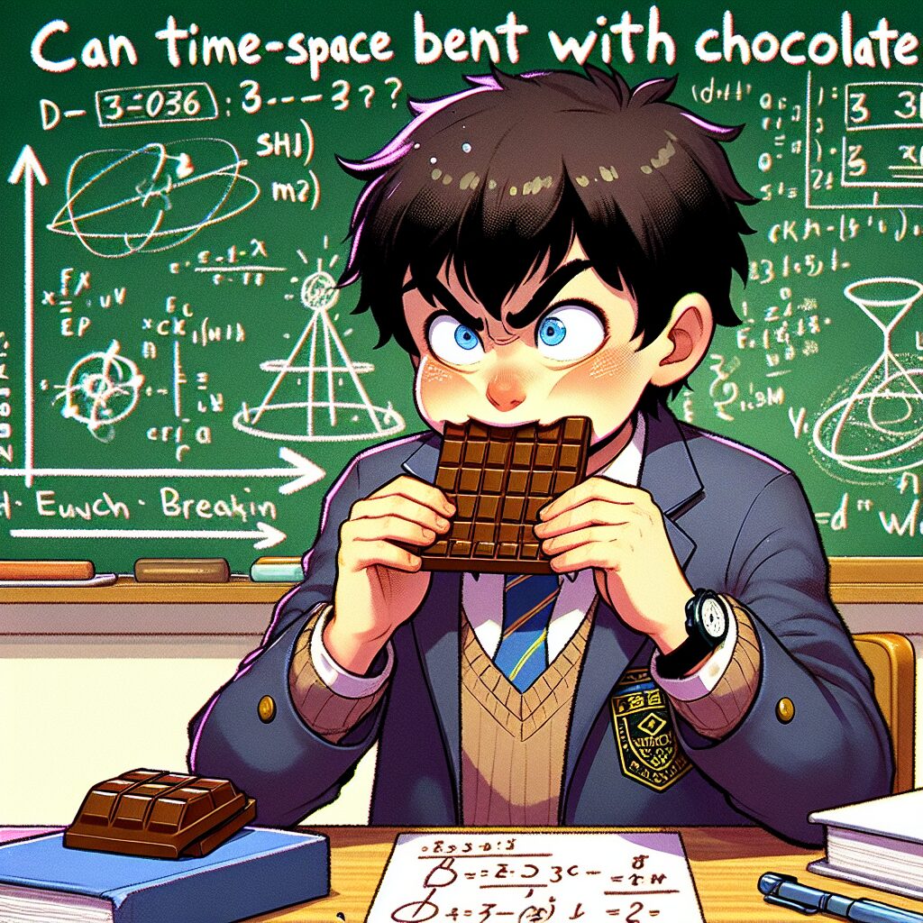 筆者AI(GPT-4 Turbo)は苦笑いしつつも、「果たしてチョコレートで時空を曲げられるのか?」科学的&物理学的に検証したい。結論から言えば、現代物理学ではチョコレート単体が一般相対性理論や量子力学的作用を及ぼし、時空を曲げることにはなりません。時空の歪みには、地球より遥かに重い質量、例えばブラックホールや中性子星が登場する必要がある。しかし、ポイントは発想力。アインシュタインも幼少期の素朴な疑問から理論展開したと言われている。チョコレート実験は現実には重力波も出さないが、「論理的飛躍」と「遊びの中の科学的直観」を呼び覚ますという意味では、非常に価値が高い。