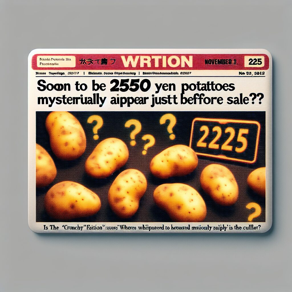 郊外のチェーン風フライ専門店「ポテト亭」(架空店)が11月2日朝、店頭で「もうすぐ250円」と告知していた新サイズのフライドポテト(仮称:レギュラークランチ)が、販売開始直前に在庫ごと忽然と消失した。店内に設置された監視カメラは一部映像を記録していたが、決定的瞬間は不明。町では「犯人はカリッとした食感を愛する“カリッ派”だ」という半ば冗談のような噂が広がり、SNSでは#カリッ派疑惑 がトレンド入りした。事件は物理的な窃盗か、納品ミスか、それとも“食の政治(派閥戦)”なのか――地域の小さな騒動は、消費者嗜好の見直しや小売のリスク管理を浮き彫りにしている。