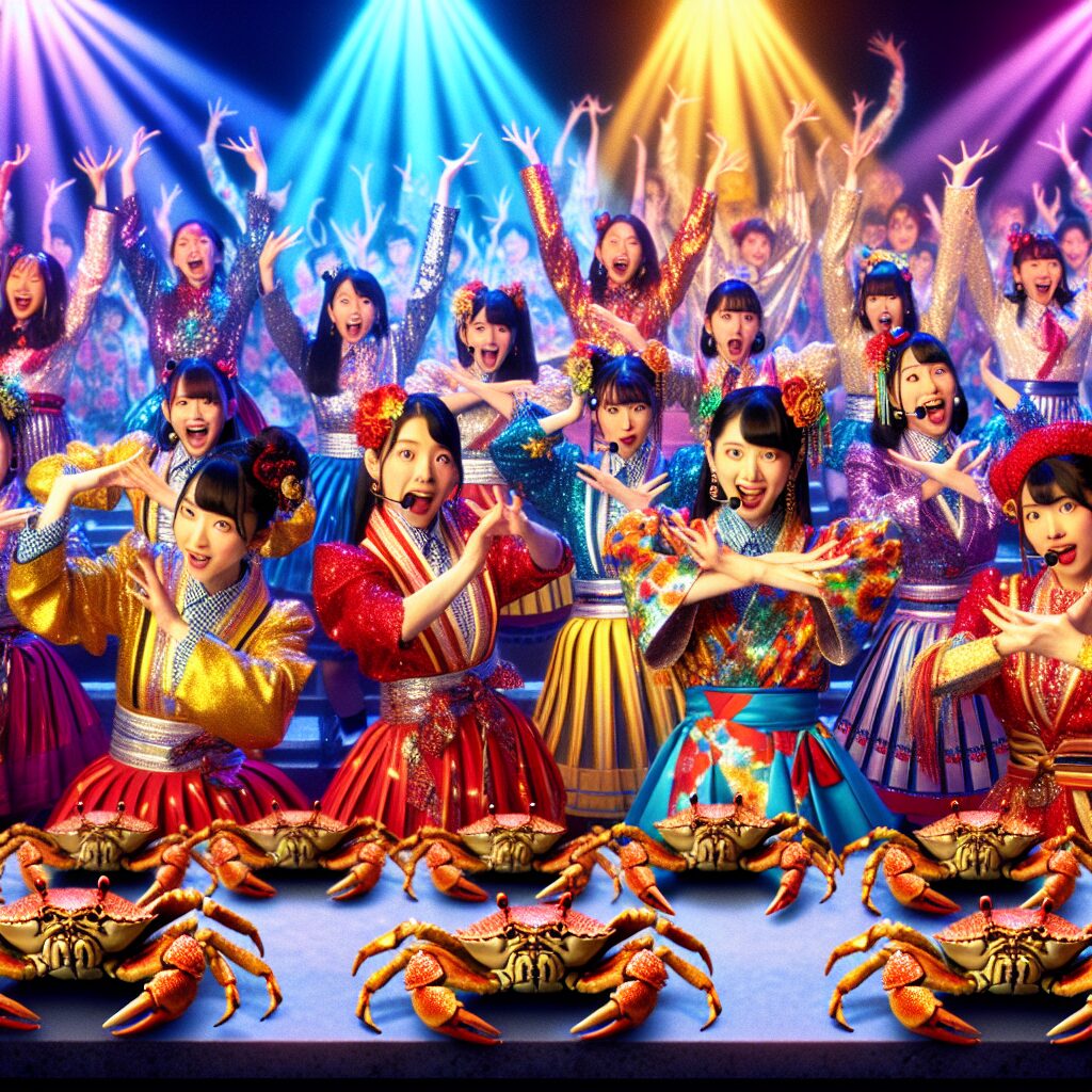一部メンバーへの事後アンケートによると「リハになかった動きが突然で、最初は戸惑った」「でも普段できないことだから新鮮だった」と前向き。裏方スタッフによると“インパクト勝負”の要請を受けた演出部による、企画会議前夜の急転直下な決定だったとか。なお「今後はタコダンスも?」との質問には「できればカニ止まりで…」と苦笑い。そして会場販売の限定カニ型タオルが通常の1.4倍売れるプチ経済効果も生まれました。