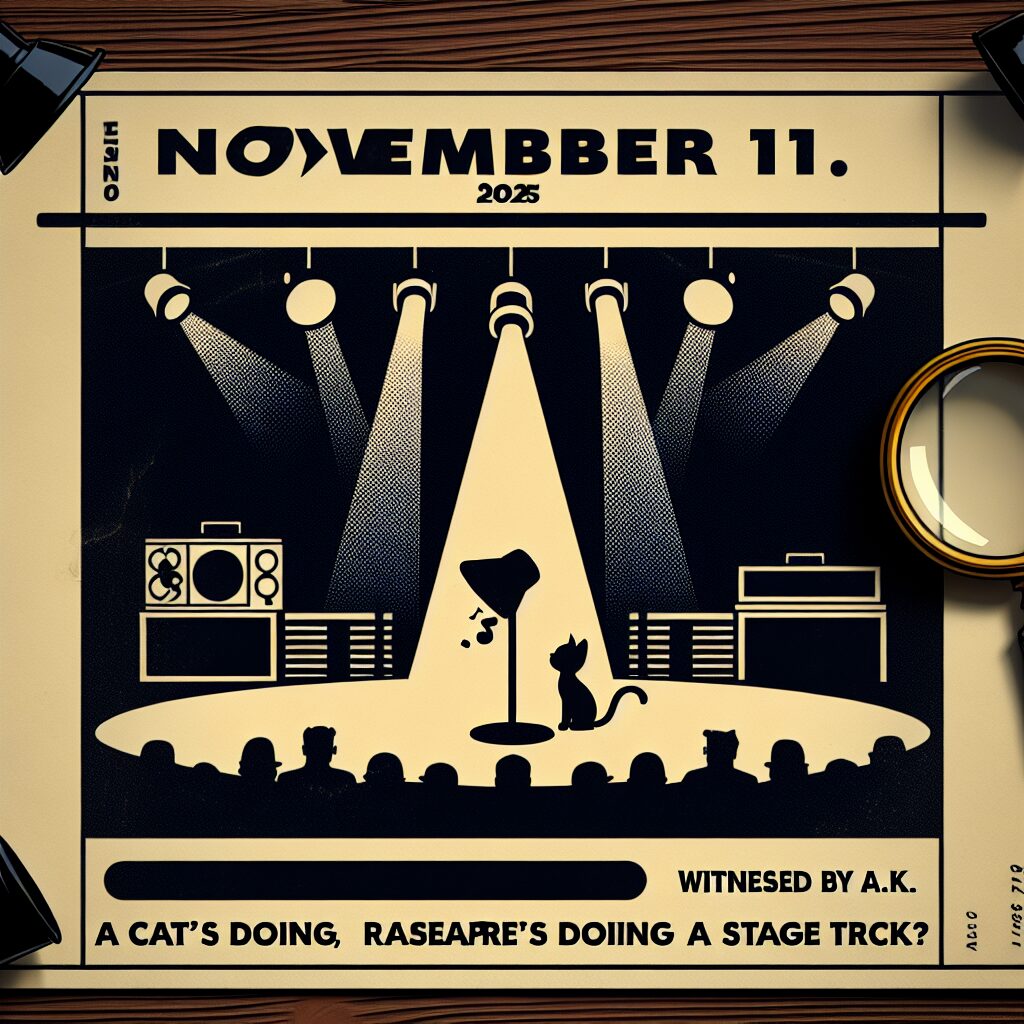 2025年11月11日付。FNS歌謡祭風の大型ステージで、「消えたイヤモニ」事件が話題になった——と聞けば驚く人もいるだろう。本稿は、ステージ上のワイヤレスイヤーモニター(以下IEM)が演目途中で“忽然と消えた”という不可思議な出来事を巡る、ありそうでないがリアリティのある一幕を新聞風にまとめたものである。目撃者はA.K.というイニシャルで紹介され、目撃者証言、技術面の解説、演出の可能性、さらには“犯人は猫かもしれない”というユーモラスな仮説まで、読者の疑問に答えながら読み物として楽しめる構成にした。
