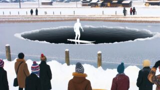 「雪国でサーフィン?秋田県民、謎の水たまりに注目集まる」