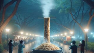 • 「全長3メートルの焼きそば、なぜ近所の公園に?〜深夜の謎イベントに記者が遭遇」
